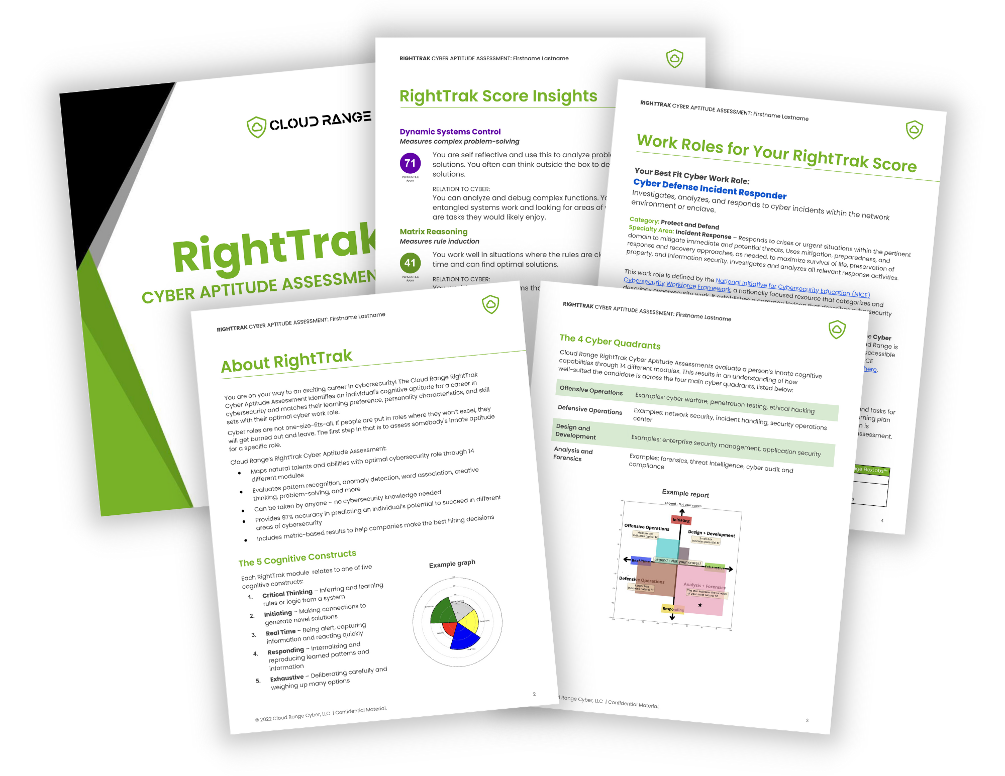 RightTrak Cyber Aptitude Assessments: RightTrak provides insights into each candidate’s natural talents and abilities and maps them to cybersecurity roles, allowing you to easily identify top talent and put the right people in the right seats. The assessment can be taken by anyone, regardless of their background – from entry-level to mature cybersecurity professionals – and includes learning plans for the best-fit job roles.
