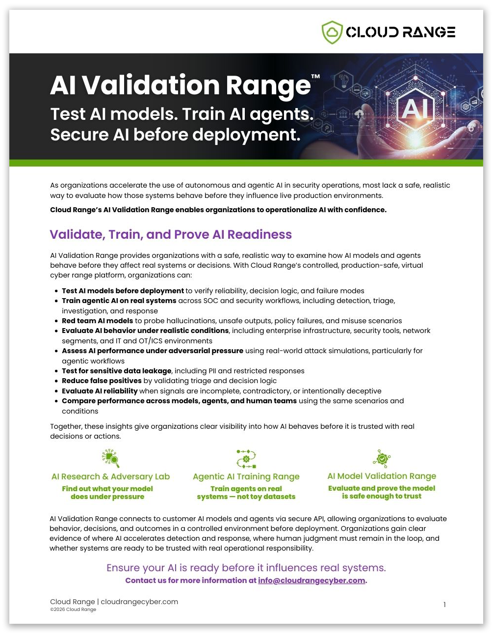 The AI Validation Range Data Sheet outlines how organizations validate AI behavior, train agentic systems, and reduce risk before deployment.